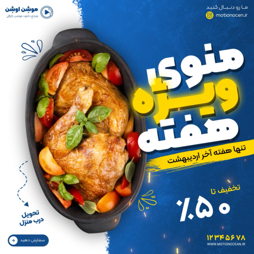توسط ” پروژه افتر افکت قالب تبلیغاتی سفید و آبی با موضوع غذا و رستوران ” می توانید محتوای تبلیغاتی جذاب و زیبا برای اینستاگرام و سایر شبکه های اجتماعی تولید نمایید. این قالب با دارا بودن فضایی زیبا، مدرن و شیک یکی از بهترین گزینه ها برای پست فضای مجازی است. یکی از مهمترین مزیت های این قالب که آن را به گزینه ای ایده آل برای پست های تبلیغاتی تبدیل می کند، وجود فضا برای عکس است. همانطور که در پیش نمایش این قالب مشخص است، میتوانید عکس مورد نظر خود را در محل پیش بینی شده این پروژه قرار دهید. اگر در یکی از زمینه های کترینگ ، رستوران، فست فود، کافی شاپ و مشاغل مشابه فعالیت دارید، این قالب مناسب شماست.